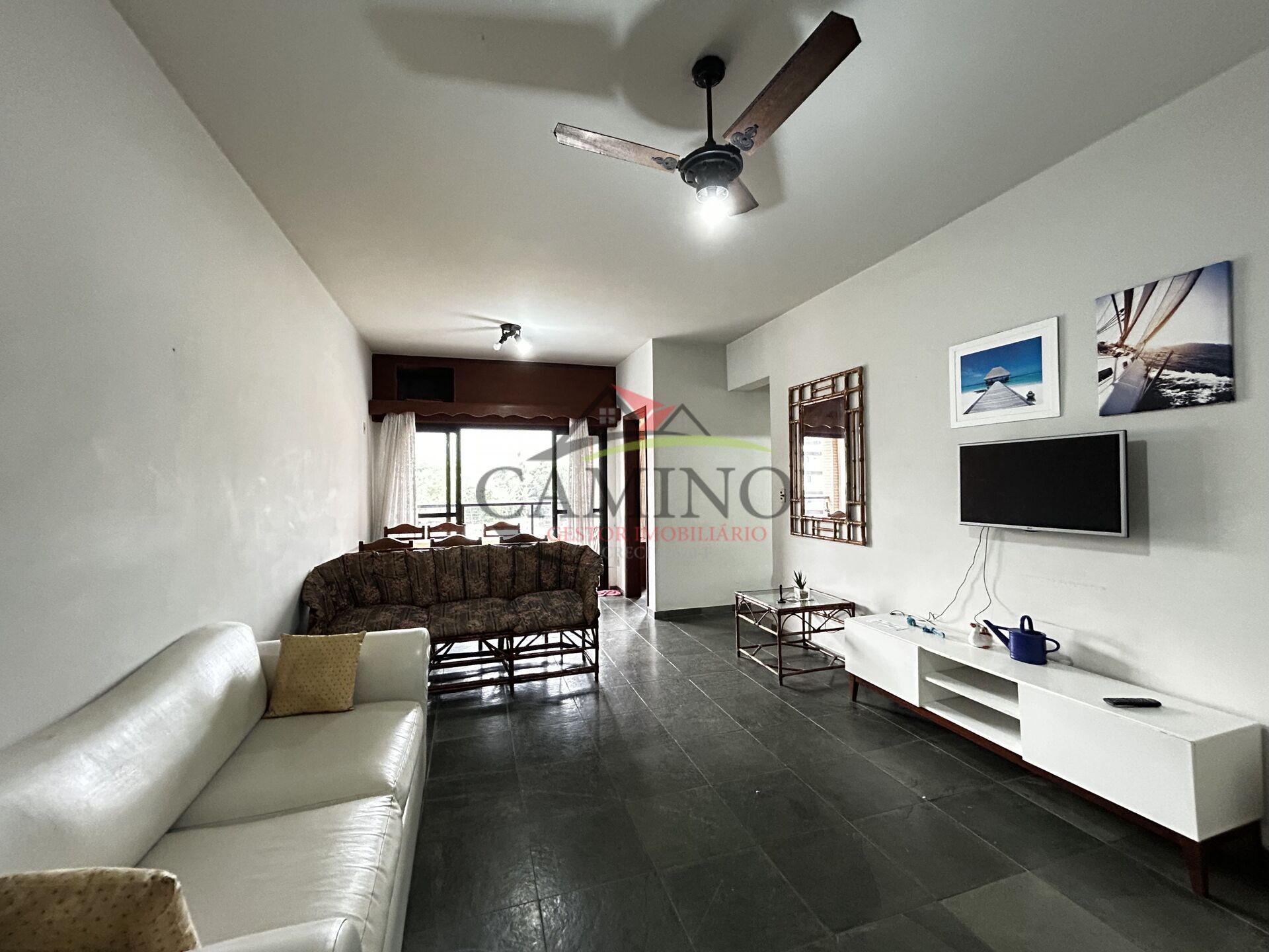 Apartamento à venda de 1 dormitórios, sala ampla, 2 banheiros, 73 m² área total e lazer 600 m da praia da Enseada, Guarujá/SP.