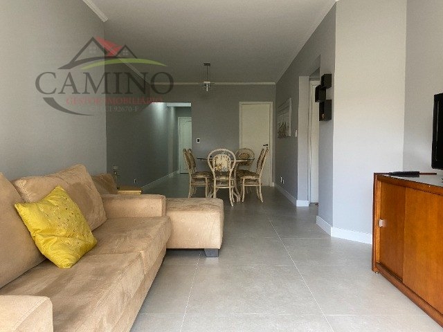 Apartamento com 03 dormitórios(sendo 02 suítes), 03 banheiros, 550m da praia da Enseada, 1 vaga. Ventilador teto em 2 dormitórios, Reformado e decorado.