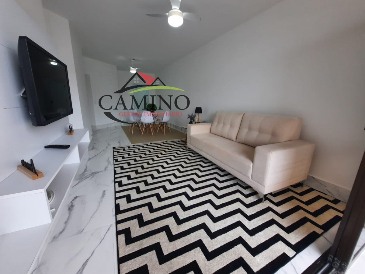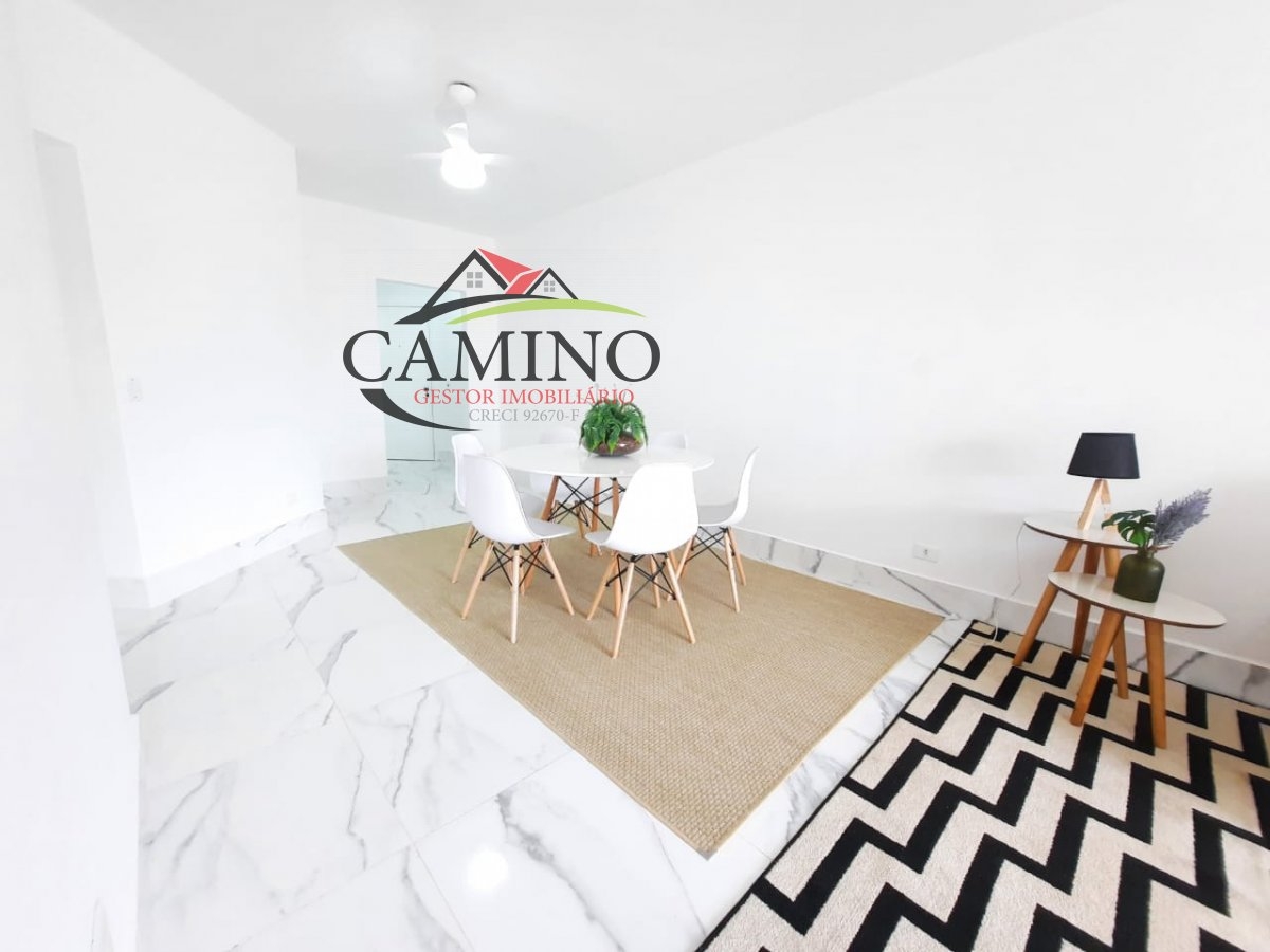Piso porcelanato branco, box, 3 dormitórios sendo 1 suíte, WC social e de empregada. Ventiladores em todos os quartos e salas, sala 2 ambientes, todo mobiliado . Segundo andar, 95 mts, 1 vaga na garagem. O prédio será todo reformado, tem serviço de praia.